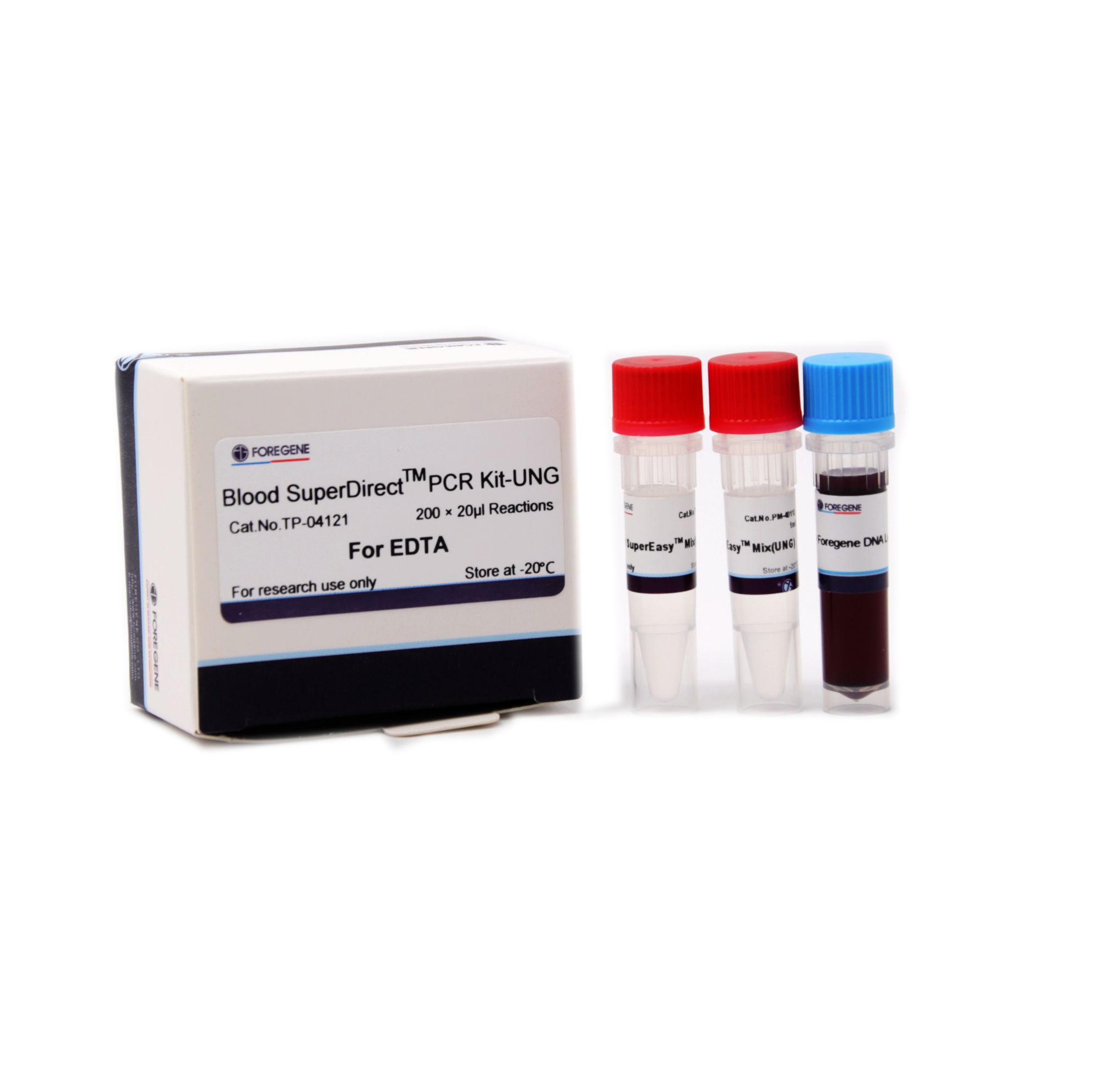 2× SuperEasyTM Mix(UNG)-EDTA:在2× SuperEasyTM Mix-EDTA的基础上用dUTP替代了dTTP,并同时加入能够降解含有dUTP模板的UNG酶,从而能够有效防止PCR扩增产物污染。包含福际生物特别改造的D-Taq DNA Polymerase、dNTPs、MgCl2、反应缓冲液、PCR反应增强剂、优化剂以及稳定剂等。PCR反应时,只需将适当的抗凝全血、引物、ddH2O添加到相应的2× SuperEasyTM Mix(UNG)-EDTA中即可用于PCR反应。